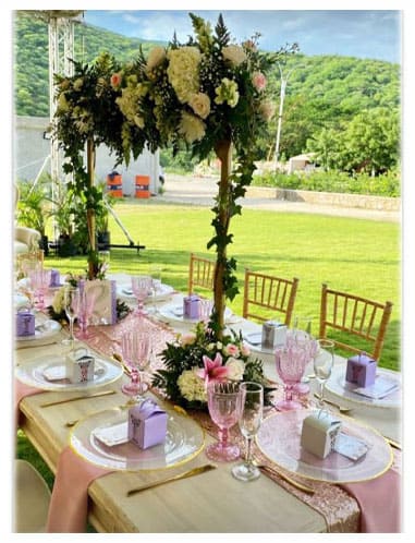 El montaje de los eventos que realizamos, va más allá de la ubicación y la disposición cuidadosa de manteles, vajillas, sillas, etc. Nuestros eventos son extensión del sentimiento de los anfitriones para quien