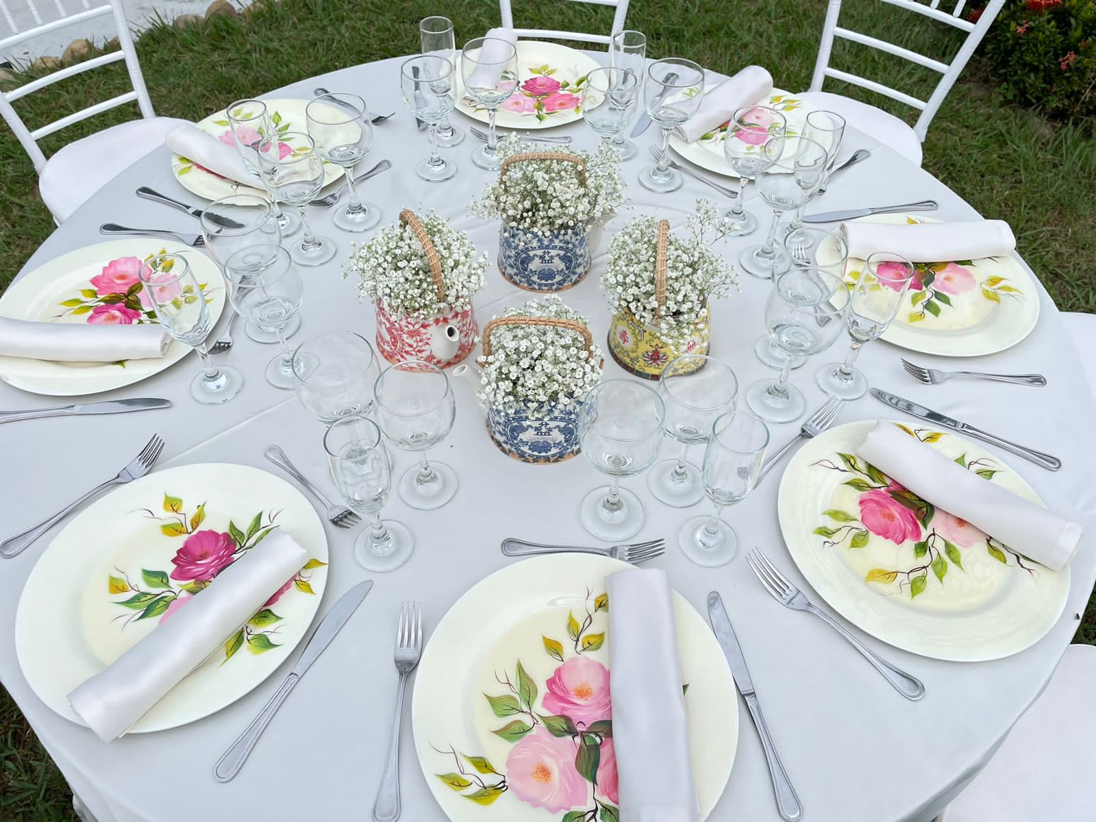 Alquilamos el menaje necesario para la realización de toda clase de eventos. Manteles y Cristales, Vajilla, Cubertería, Arreglos Florales, Mesas, Sillas y Accesorios forman parte del servicio que ofrecemos en una asistencia integral...